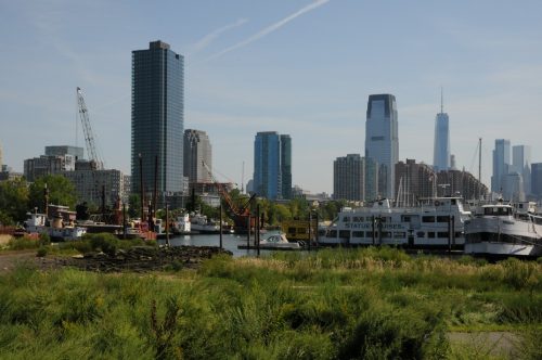The view across to Manhattan from the approach to Liberty State Park is through some green and slightly run-down boat yards, which gave a nice contrast: