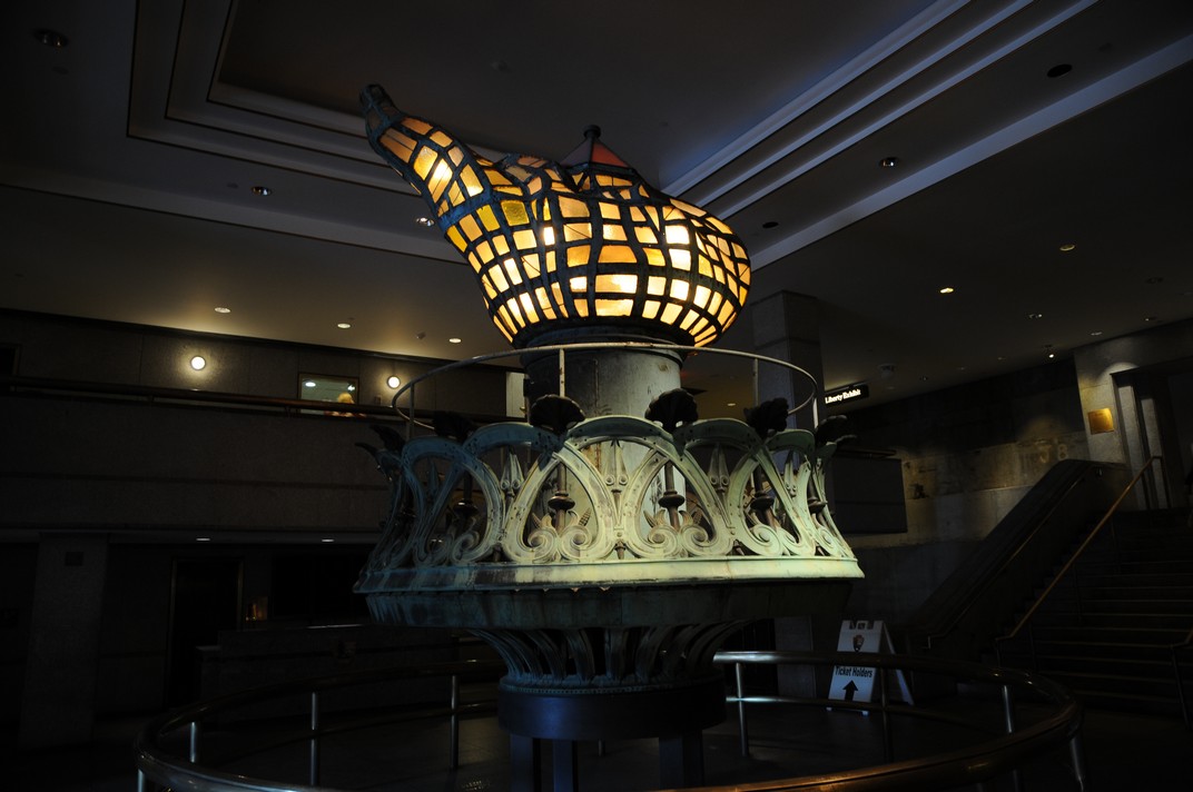If you get the chance, it is well worth getting at least ‘pedestal’ tickets as they allow you to get much closer (and higher) than the basic tickets that just allow access to the gardens just above the water. They also get you into the museum inside the pedestal – inside the entrance is the original illuminated flaming torch