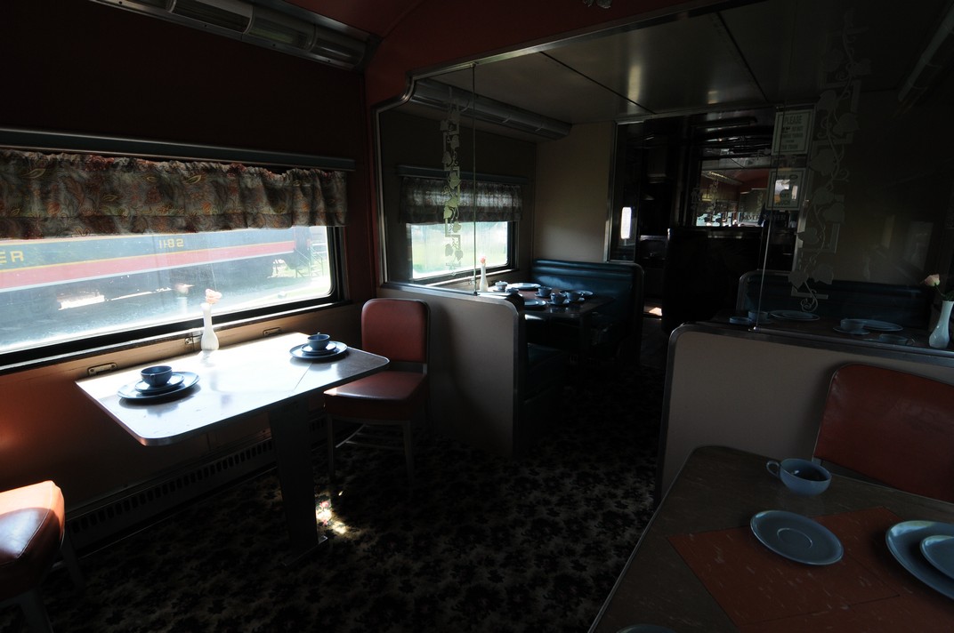 Inside the tables were elegantly set out, with proper china plates etc, and quite decent spacing between tables. Not crammed in like modern trains.